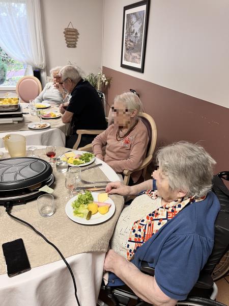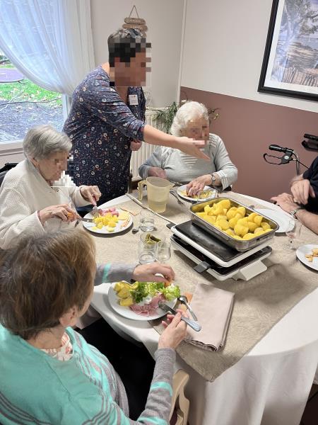 Comme chaque mois, nous avons eu le plaisir d’organiser un repas thématique en petit comité au sein de l’EHPAD Les Jardins de Longuiolles à Vaujours en Seine Saint Denis (93). Cette semaine, c’est autour d’une délicieuse raclette que les résidents se sont réunis pour partager un moment chaleureux et convivial.
